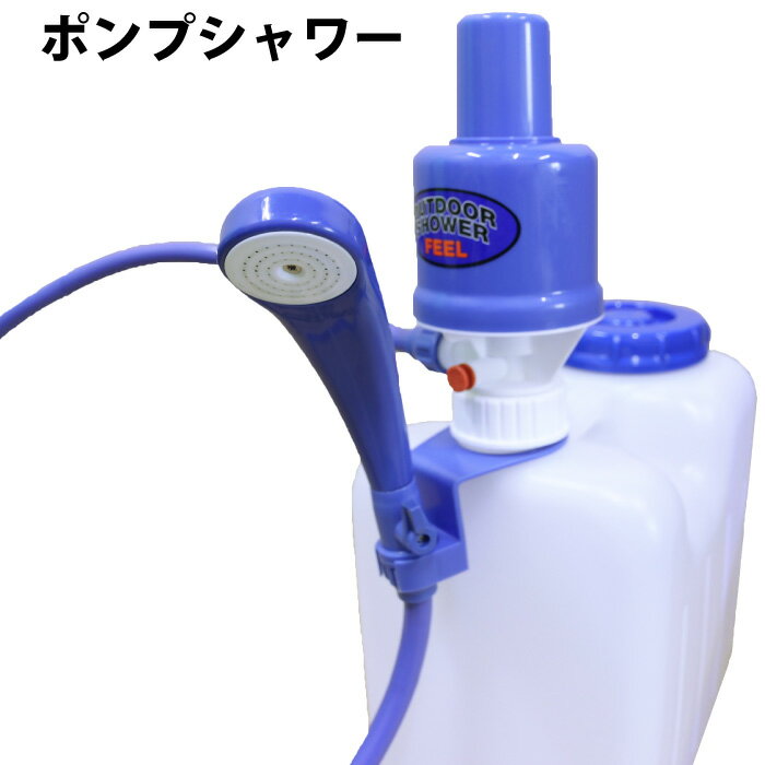 ポリタンクなどに水を溜めておけば、そこにシャワーの吸い込み口をいれ手動で加圧することで、いつでもどこでもシャワーが使えます。